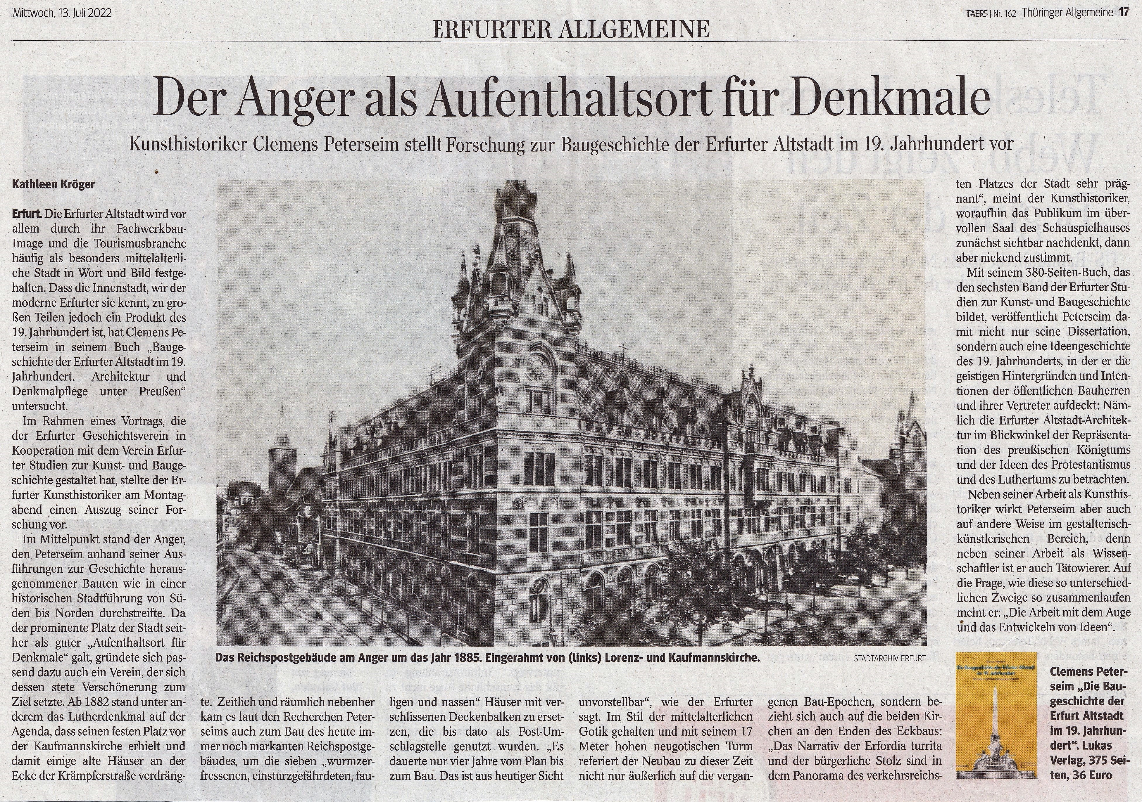 in: Mitteilungen des Vereins für die Geschichte und Altertumskunde von Erfurt, Heft 83 (Neue Folge 30), Erfurt 2022, S.230-235.